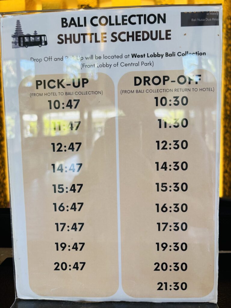 ホテルからはBaliコレクションとビーチクラブに向かってシャトルバスが運行していました。