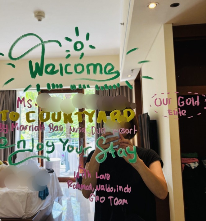 - 部屋のミラーにウエルカムメッセージ