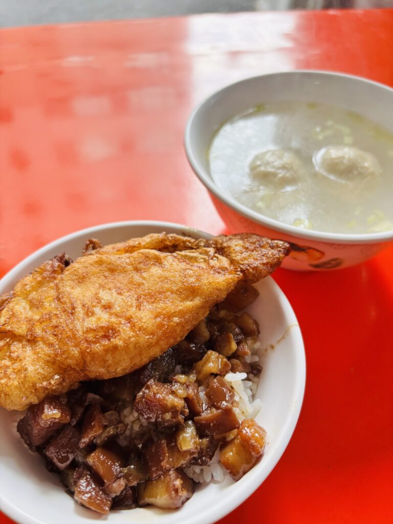 • 鴨の半熟卵のせ肉燥飯と魚のスープを注文