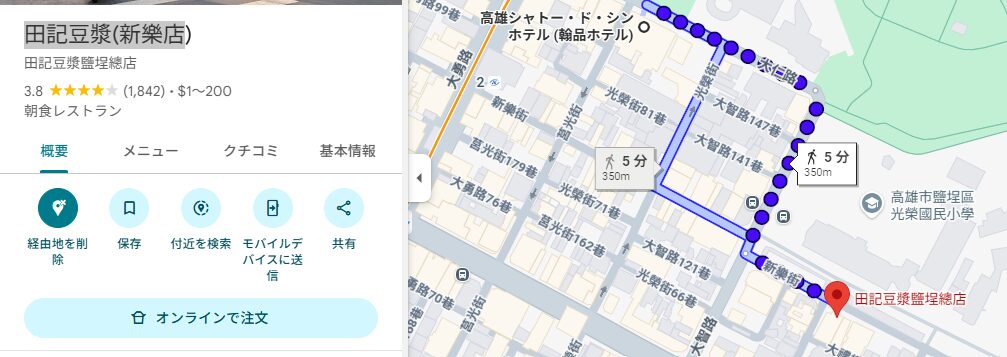 宿泊したシャトー・デ・シン 高雄 から徒歩5分ほどの「田記豆漿」(読めない・・・)は、