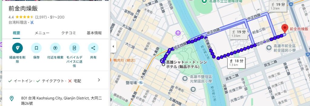 こちらも、宿泊したシャトー・デ・シン 高雄から朝の散歩にちょうどよい距離です。