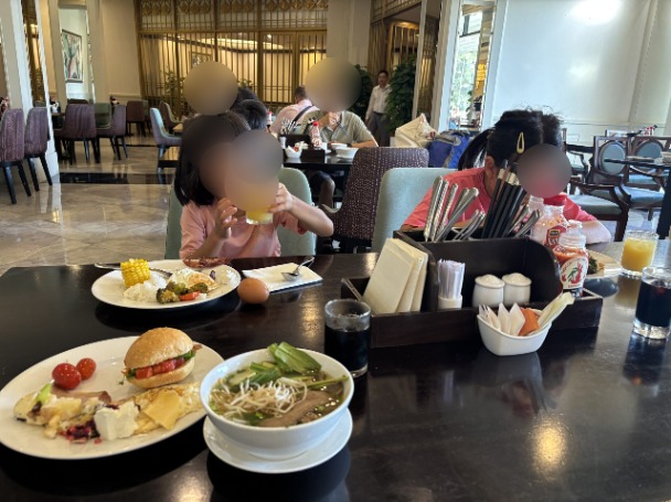 朝食はビュッフェ(写真左)で、世界60か国貧乏旅行を果たしたたこすけ史上最も豪華でした。w