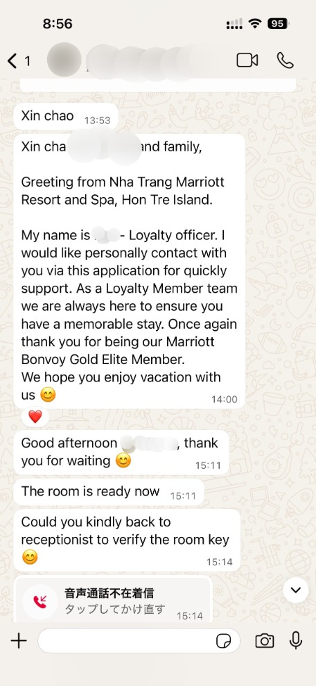 WhatsAppでコンシェルジュご本人と直接やり取りするという、日本では考えられないサービス。