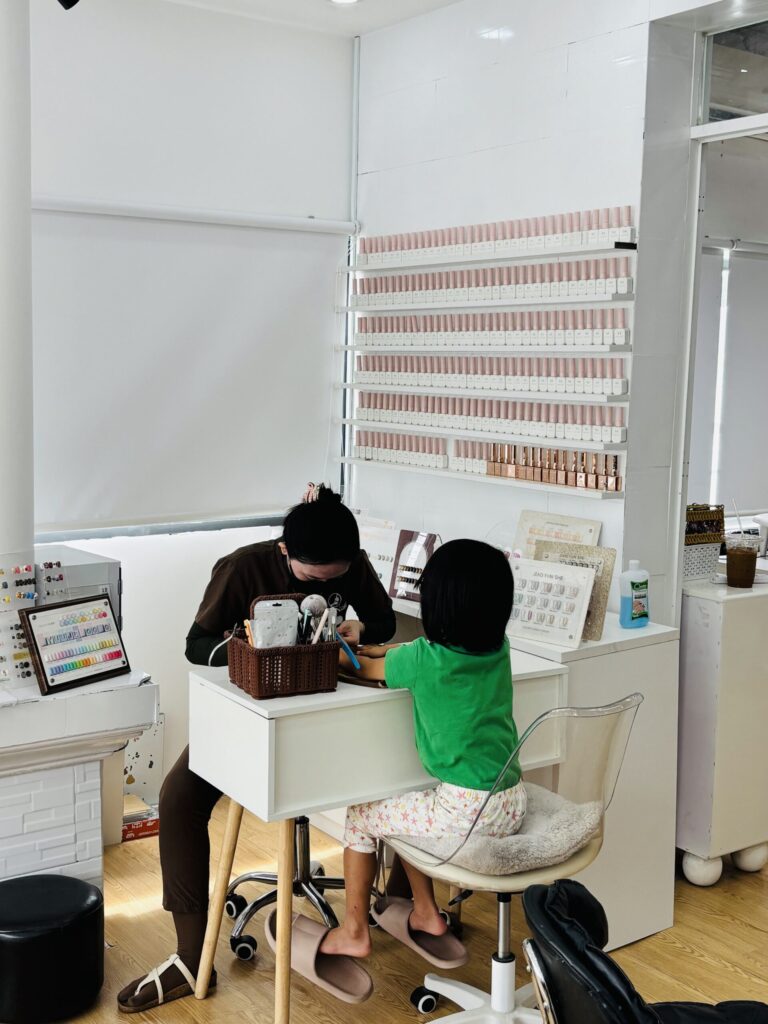 ・母たこすけはハンド&フットジェルネイル、長女ハンドジェルネイル、次女はジェルではないハンドネイル。何もお願いしてないのに「安くしとくねー」って感じで総額を割引してくれましたw