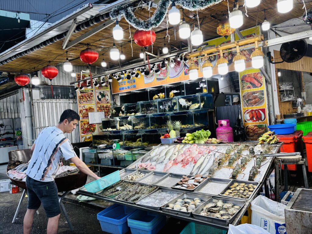 子供に食べさせるには想像していたより衛生面が・・・だったので、近くの海鮮料理屋さんへ。
