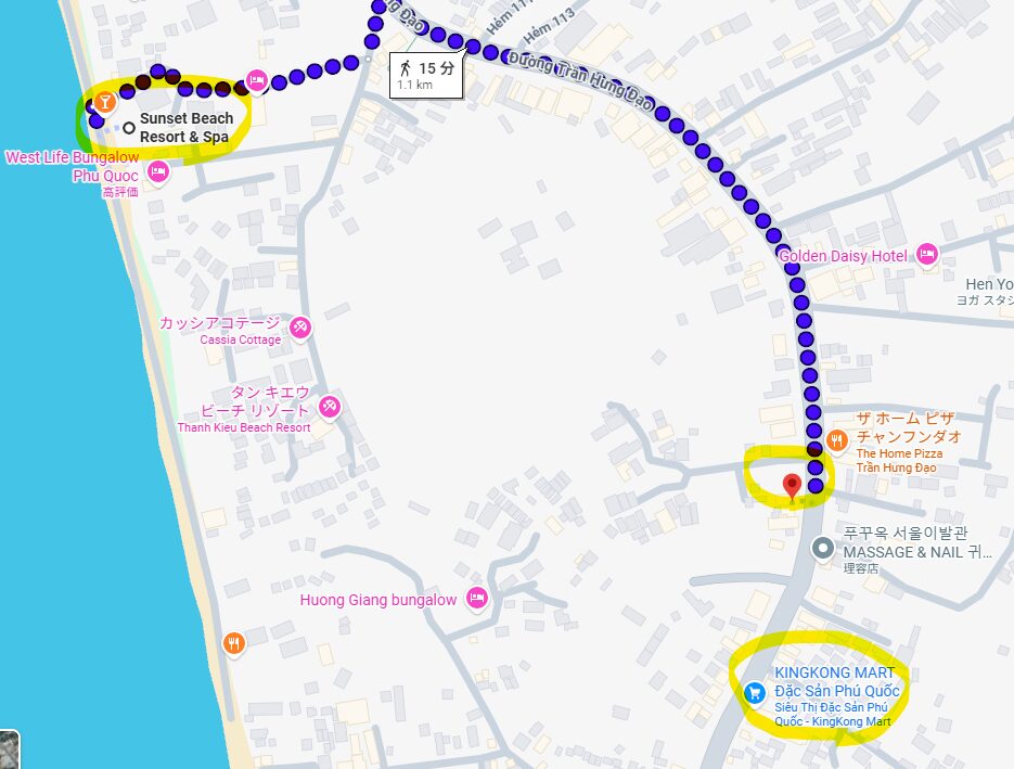 ・サンセットビーチホテルから徒歩15分。キングコングマートに行く途中にあります