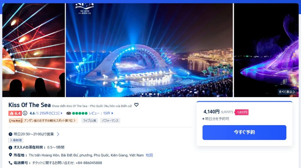 さらにさらに、なんと、本来有料で施設へ入場して観覧するキスオブザシーが、