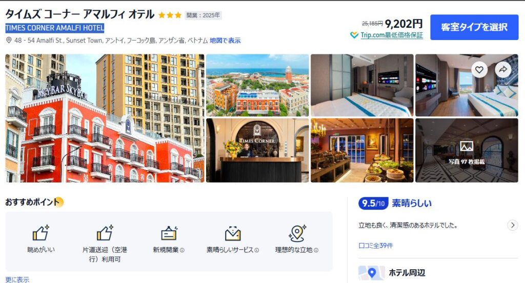 2025年~2026年の年越しに、フーコックのサンセットタウンに宿泊しました。
