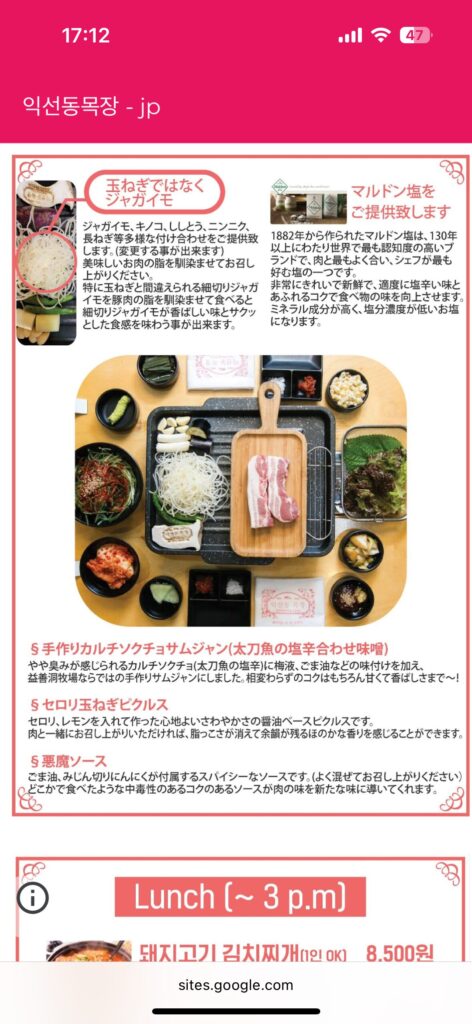 こちらも「イビスアンバサダーインサドン(リンク)」から徒歩7分くらい。